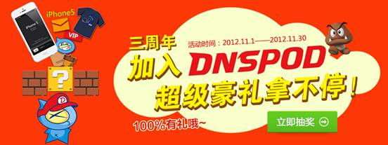 DNSPod三周年活動(dòng)專題:http://www.dnspod.cn/event/year2012